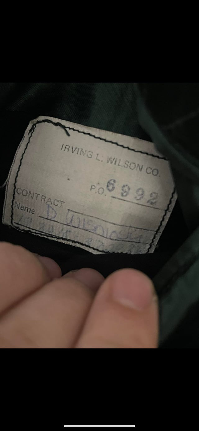 This U.S. Army uniform may have belonged to a soldier identified as “D Wisnioski.” Despite efforts, the current owner has been unable to verify or locate next-of-kin. The uniform is preserved in very good condition and represents a tangible piece of U.S. Army history.