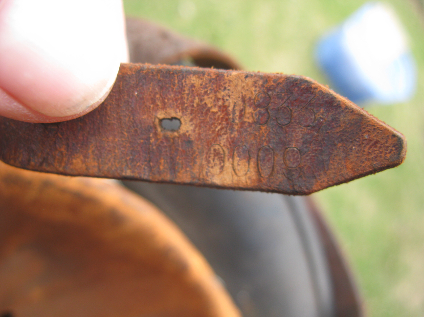 - Liner & Chinstrap: Early-war square bale aluminum liner remains fully intact; drawstring missing. Original bottle green painted chinstrap buckle is still present, typical of 1940-issued helmets.